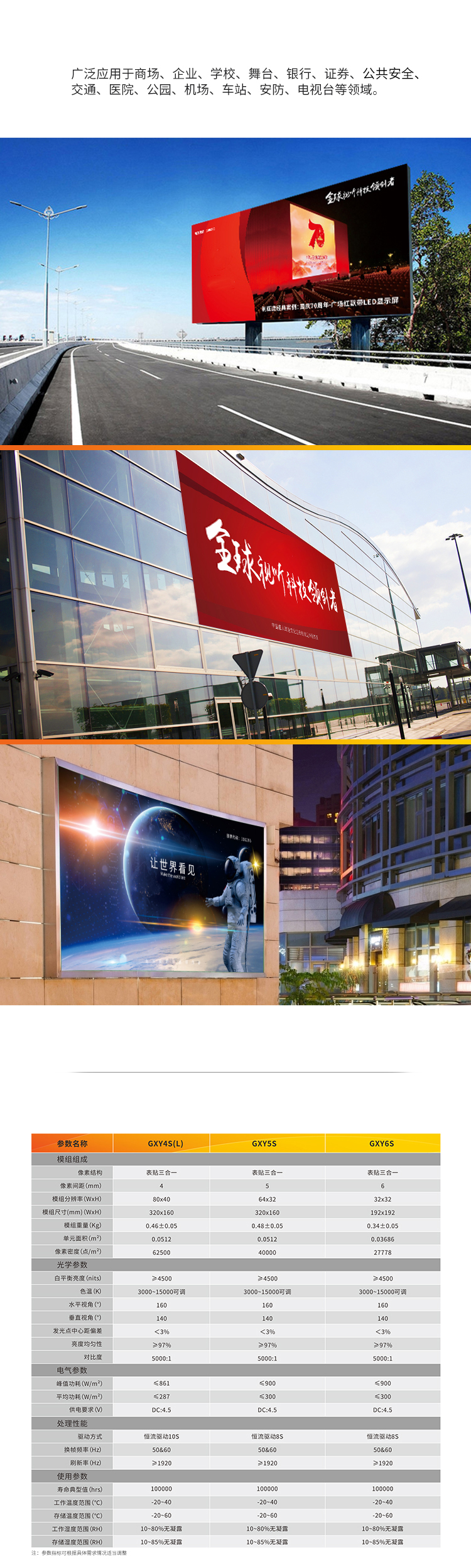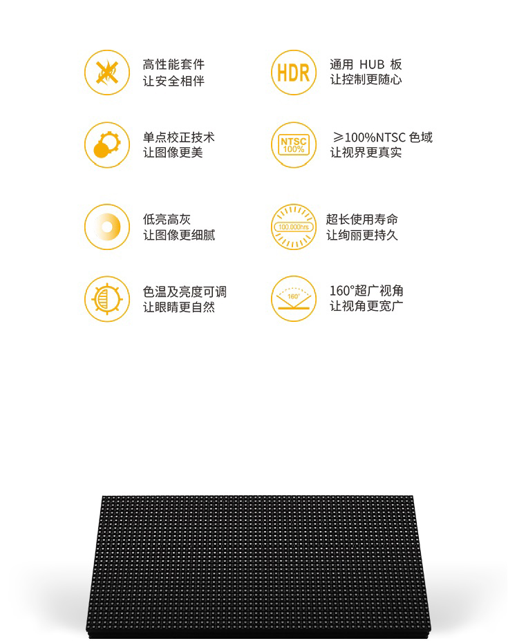 無拼縫、超寬視角,亮度色度均勻不偏色 畫質(zhì)柔和,長時(shí)間觀看不疲勞 超高刷新顯示,換幀速度快,消除重影無拖尾 箱體靈活小巧,對(duì)準(zhǔn)槽+定位銷設(shè)計(jì),確保屏體平整無縫 16bit灰度處理處理,色彩過度更自然 具有靈活、輕便、易于安裝和維護(hù)的特點(diǎn)。 廣泛應(yīng)用于商場(chǎng)、企業(yè)、學(xué)校、舞臺(tái)、銀行、證券、公共安全、交通、醫(yī)院、公園、機(jī)場(chǎng)、車站、安防、電視臺(tái)等領(lǐng)域。