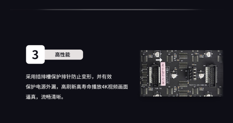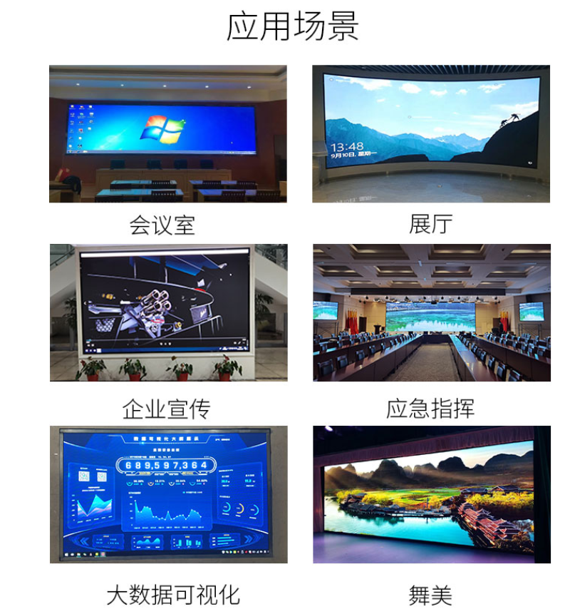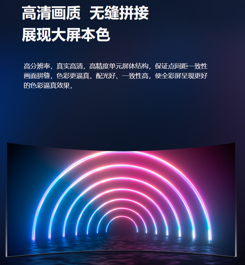 無縫拼接,超寬視角,亮度色度均勻不偏色 畫質(zhì)柔和,長時間觀看不疲勞 超高刷新顯示,換幀速度快,消除重影無拖尾 箱體靈活小巧,對準(zhǔn)槽+定位銷設(shè)計,確保屏體平整無縫 16bit灰度處理處理,色彩過度更自然 高刷新度,使得畫面播放更加順暢不閃屏,高灰階顯 示畫面色彩更加細(xì)膩與飽滿,高清的分辨率讓顯示效果更加清晰。