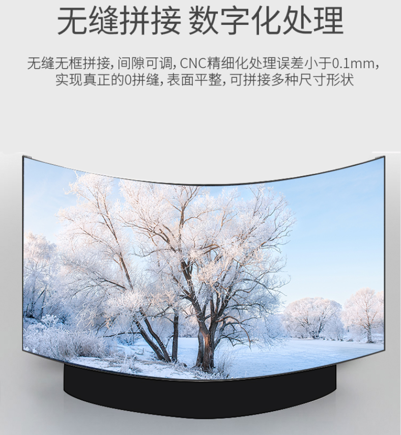無拼縫、超寬視角,亮度色度均勻不偏色 畫質(zhì)柔和,長時(shí)間觀看不疲勞 超高刷新顯示,換幀速度快,消除重影無拖尾 箱體靈活小巧,對(duì)準(zhǔn)槽+定位銷設(shè)計(jì),確保屏體平整無縫 16bit灰度處理處理,色彩過度更自然